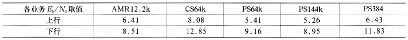 城区环境中以Multipath fading Case 2衰落环境下所得Eb/No值为准,其中CS及PS域业务BLER分别取为0.01与0.1,如表3所示。