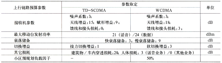 表6 TD与WCDMA上行链路预算参数