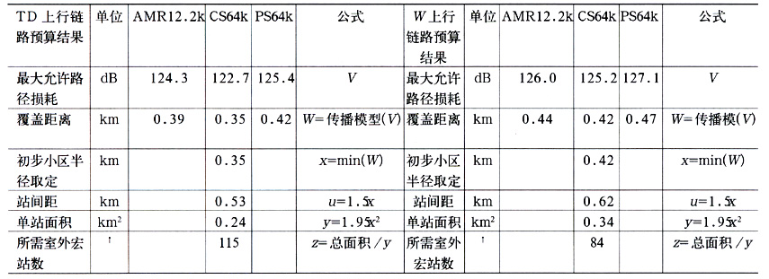 结合取自适用于2GHz频段的COST231-HATA电波预测模型,且其k值参数经校正后符合上海市本地无线传播环境,由此可得TD与WCDMA系统上行链路预算结果,对比如表7所示。