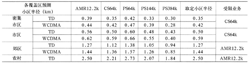 表8 WCDMA与TD-SCDMA无线覆盖性能比较