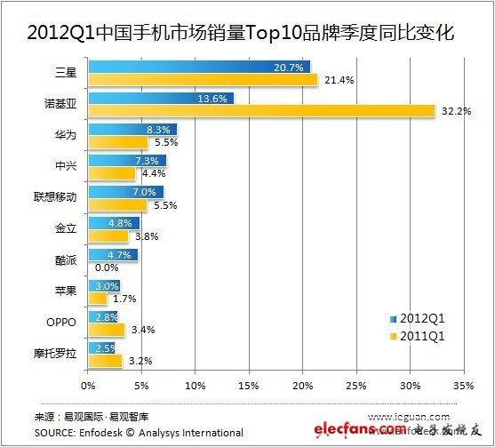 http://www.hds668.com中新网12月31日电2012年智能手机市场风云变化,三星和苹果占据了整个手机市场99%的利润,国产手机抢占了过半的市场份额,然而所占利润却不到1%。系统方面