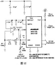 图12中,如果提高运放的输出电压,使其与模拟输入电压的最大值(+2.46V)相等,则模拟输入电压的范围将变为+2.46V~-2.46V,MAX165将由单极性转换变为双极性转换。SOC开发平台360元 豪华单片机开发系统498元 单片机学习板138 无线nRF-9E5模块100元 S3C44B0 ARM7开发板398元 Genius NSP通用编程器260元 Mini ARM Debugger330元 LABTOOL-48UXP2800元 S3C2410 ARM9开发板800