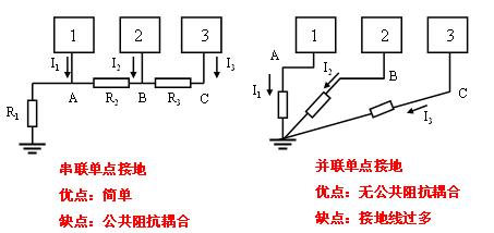 帮忙详解下单点接地与多点接地,我知道单点串联接地和单点并联接地,不知道多点接地是个什么样子,要是能把两者画个图作以对比的话,那就再好不过了