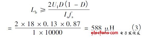 本文采用UC3842为PWM控制电路,电源工作频率选为85 kHz。