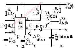 208 射频探头用负压源电路图如图所示,555和R1,R2,C1组成无稳态多谐振荡器,