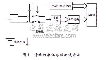 ,最简单的是用电阻分压方式测量:依次测量各串联节点的电压,由于所测电压是总电压,单体电池电压只占一部分,则测量精度按比例降低;另一种测量方法是每一个单体电池采用一个隔离运算放大器,这种运算放大器可把