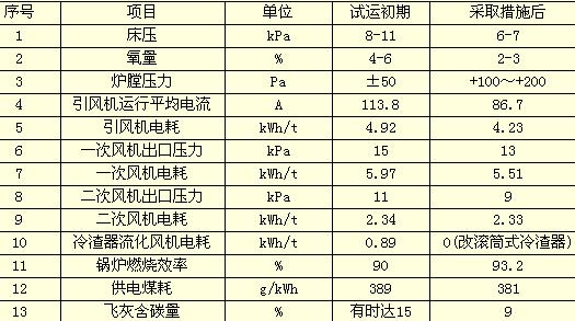 l 采用四项有效的循环流化床锅炉燃烧措施即:低床压、低氧量、高炉膛压力、优化煤粒粒径级配措施,提高锅炉燃烧效率的同时也降低了风机电耗。