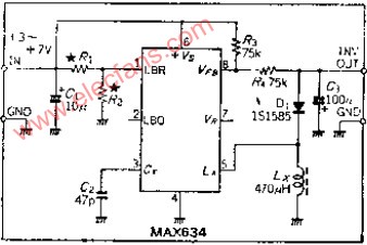 就会出现一个负电压,理论上比电源电压低0.7V,然后再稳压到-5V。 3、负压电源转换器产生负压 MAX749是一个专门用来产生负电压的电源转换器。 MAX749为倒相式PFM开关稳压,输入电压