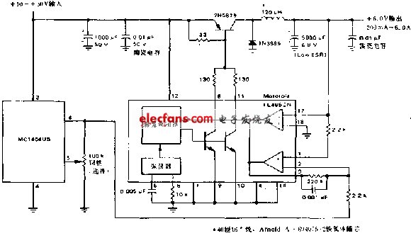 大类。图2所示为应用最广泛的串联式集成稳压器内电路方框图,其工作原理是:取样电路将输出电压Uo按比例取出,送入比较放大器与基准电压进行比较,差值被放去控制调整管,以使输出电压Uo保持稳定。