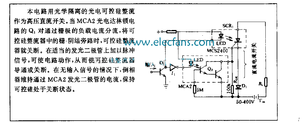 对于开关电路,往往要求控制电路和开关电路之间要有很好的电隔离,这对于一般的电子开关来说是很难做到的,但采用光电耦合器就很容易实现了。图中(a)所示电路就是用光电耦合器组成的简单开关电路。