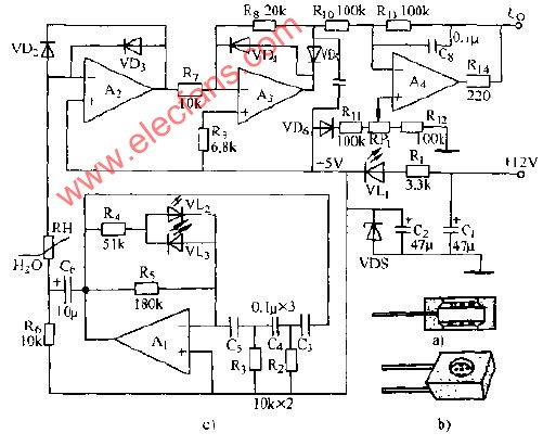 电子发烧友网>电子威廉希尔官方网站 应用>电子威廉希尔官方网站 >电路图>光电隔离电子电路图>UD-8型湿度敏元件应用电路图