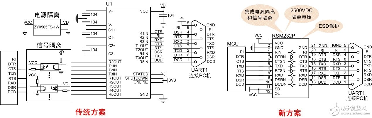 35 由于RS-232的典型应用是在系统间的通讯,因此在各系统间的隔离设计已经变的非常必要。隔离不仅可以保护器件免受总线上的高压危害,还可以消除总线上的接地回流,同时隔离还可以有效的减少系统间数据传输的误码与错误。
