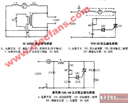 这种吸尘器使用可控硅元件构成调速电路,能根据需要控制电机转速,以发迹管道吸力