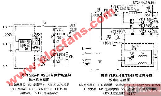 美的YLRS1-5H 5B-38带冰箱冷热饮水机电路图