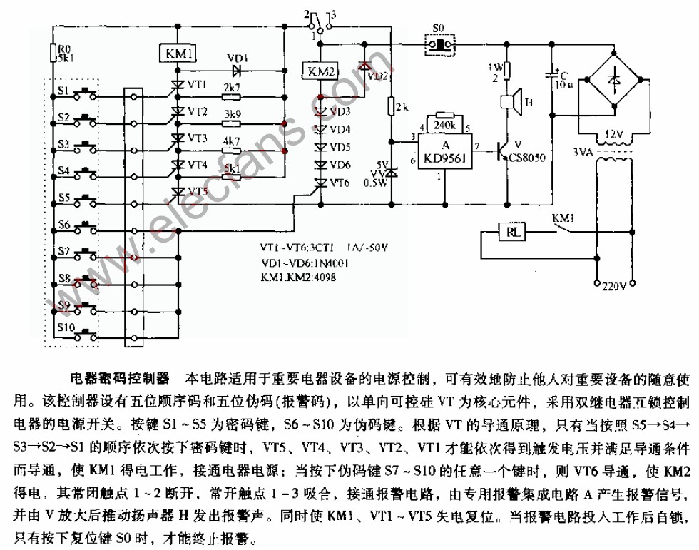 电子发烧友网>电子威廉希尔官方网站 应用>电子威廉希尔官方网站 >电路图>消费类电子电路图>电器密码控制器电路图