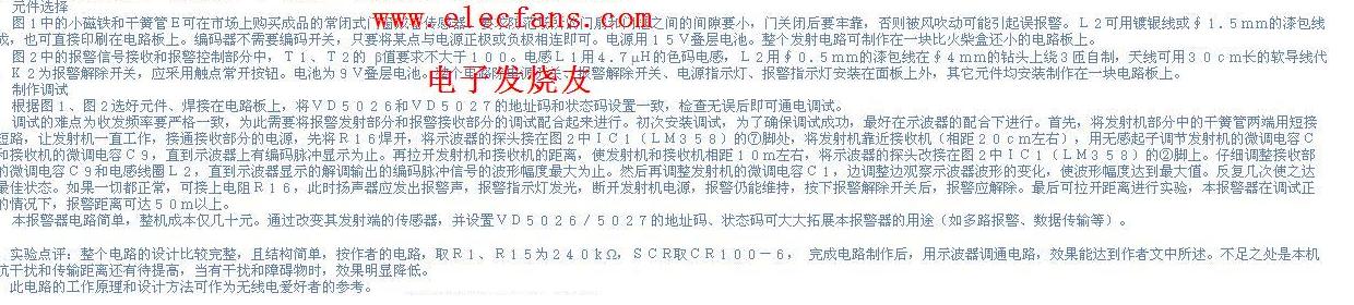 这里介绍的报警器无需外接传需线路,靠电力线路传需报警信号。并可设置多处报