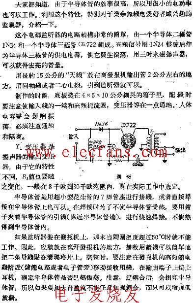 1 下图是由声控传感器构成的防盗监听电路。与调频收音机配合使用可作为家庭、仓库、车库等的监听器。
