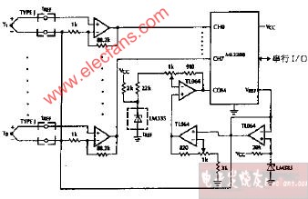286 如图所示为由ISO102与INA101构成的具有地环路消除、冷端补偿和高端熄灭的热电偶放大电路。