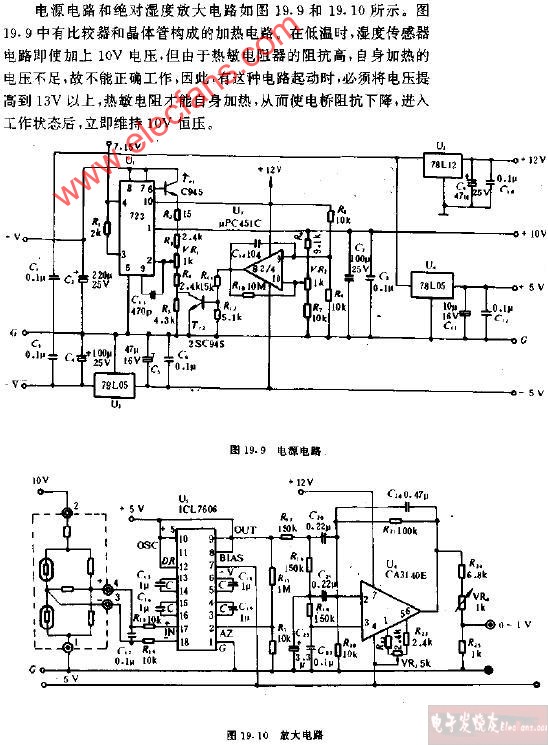 26606 数显湿度计主要由以下几部分电路: (1)湿度/电压转换电路电路 (2)湿度/频率转换电路 (3)利用LM331组成的电路 (4)显示电路