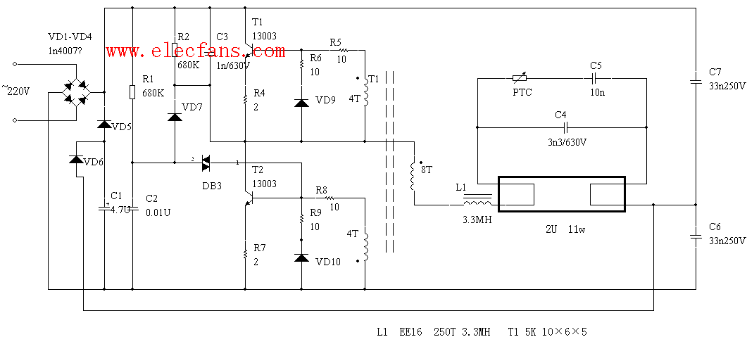 电子节能灯电路原理图
