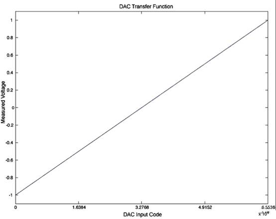 使用相似的等式,可以计算任意给定输入编码的电压值。利用MATLAB?或Excel?软件等工具可以很容易地计算所有编码的电压,重建全部的DAC传输。
