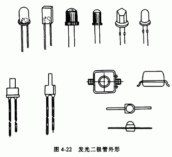 按其封装外形可分为圆形、方形、矩形、三角形和组合形等多种,图4-22为几种发光二极管的外形。