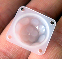 这是我们最新开发的超小球型红外透镜,它分两部分组成,底座可以直接戴到RE200B上,上盖是菲涅尔透镜,它解决了菲涅尔透镜不好固定的问题,右图是我们做好的成品模块,客户可以点击详细了解性能!