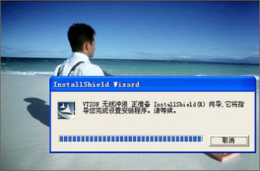 安装驱动程序之前,请不要把VTION 无线冲浪卡插入插槽。若您将VTION 无线冲浪卡插入插槽后安装驱动程序,会有下列窗口显示,此时您必须要点击“取消”,从插槽里拿出卡之后开始进行安装。