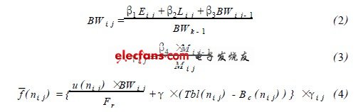 式(1)强调通用性而没有对无线环境以及嵌入式设备进行相关处理。本文结合无线网络误码率高以及移动终端处理能力弱的特点对标准中算法进行了优化。首先移动终端统计误码率和丢包率,分别记为Ei,j和Li,j,并设定一个值Mi,j表示移动终端反馈的其缓冲使用度。移动终端定时把几项数据反馈给网络代理模块,网络代理根据移动终端的反馈信息重新对网络带宽可用度进行评估并对原算法公式进行调整,计算式为: