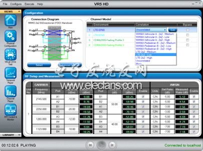 实时信道模拟器,真实的仿真信道场景;实时修改参数,测试效率大为提高;强大GUI,精确的信号和噪声功率,可信的测试结果;连接简单,端口灵活配置,测试简单。以上特点使VR5-HD非常强大的支持无线信道仿真的需要,特别是对于TD-LTE的多天线测试,最多可达16个射频通道,端口多,连接复杂,必须要有简单易用的连接方式,VR5-HD特有的8通道内置双工器无需外接任何器件即可完成双向8通道的连接,非常简单。