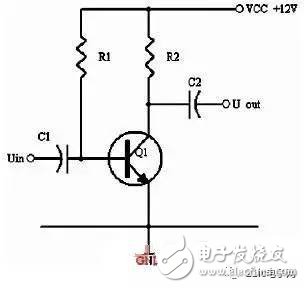 上面提到在图1放大电路电路中,静态工作点的设置为Uce接近于电源电压的一半, 为什么?这是为了使信号正负能有对称的变化空间,在没有信号输入的时候,即信号输入为0,假设Uce为电源电压的一半,我们当它为一水平线,作为一个参 考点。当输入信号增大时,则Ib增大,Ic电流增大,则电阻R2的电压U2=Ic×R2会随之增大,Uce=VCC-U2,会变小。U2最大理论上能达到 等于VCC,则Uce最小会达到0V,这是说,在输入信增加时,Uce最大变化是从1/2的VCC变化到0V.同理,当输入信号减小时,则Ib减小,Ic电流减小,则电阻R2的电压U2=Ic×R2会随之减小,Uce=VCC-U2,会变大。