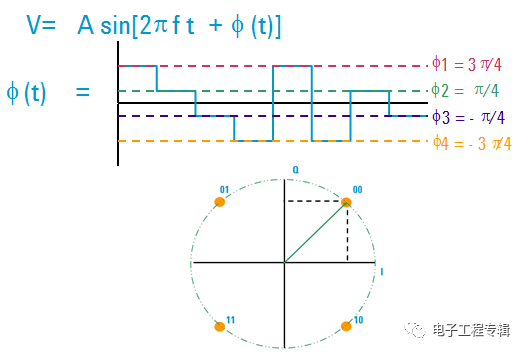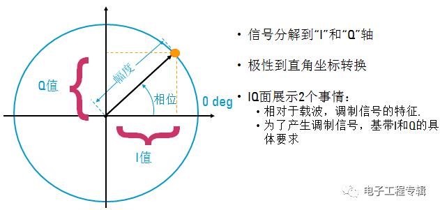 矢量的相位直接测量比较困难。实际的接收机和测量系统使用I/Q解调方式。它把信号相位的控制问题转换成2路正交分量电压的控制问题。