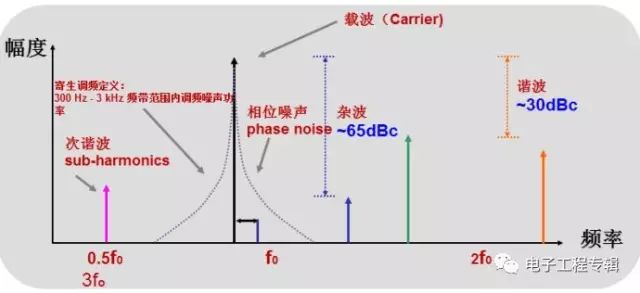 相位噪声主要由振荡器内部噪声带来,而谐波杂波的形成与器件的非线性有关: