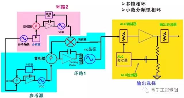 提高PLL输出信号相位噪声指标的原则是减小分频比N,通过采用多锁相环和小数分频威廉希尔官方网站 可以实现以上目的。
