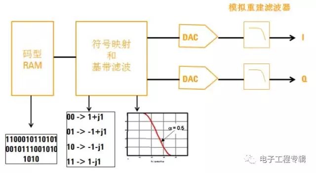 图32基带信号发生器中的滤波器作用IQ调制器:I和Q路信号由同一本振信号合成,但本振有90度相移,I/Q路互不干扰,最后得到一和路信号。