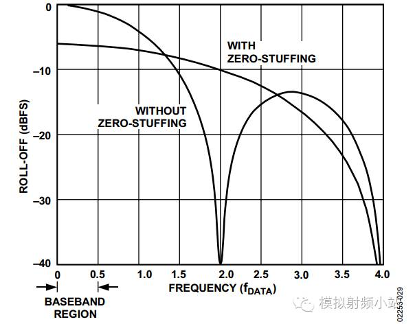 现在通信系统中信号带宽越来越宽,考虑到DAC本身的SINC滚降会使得信号带宽内的平坦度降低。这时候就可以采用补零的方式来增强平坦度,但这样也必然会使得对镜像的抑制能力变弱。