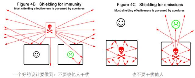 屏蔽措施往往带来费用和仪器重量的增加,若能以其他EMC方式加以解决,就尽量减少屏蔽。(言下之意屏蔽是最后一招)