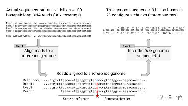 通过这个基准序列得到的复制数据,谷歌团队可以拿它们来训练基于Tensor Flow的图像分类模型,所得到的DeepVariant,最后可以区别真实序列数据和复制数据。