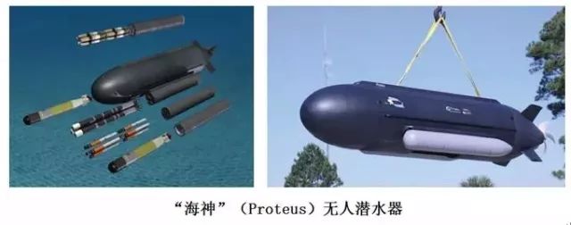 “海神”潜水器(图6)能承担大量功能:从预定水域巡逻到隐蔽跟踪弹道导弹核潜艇。潜水器里配置了货舱,可搭载180公斤载荷,包括各种传感器、通信设备、爆炸装置(物)等。还可以携带MK67水下机动水雷或MK54鱼雷,因而在必要时能对所跟踪的目标实施打击。