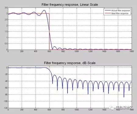 砖墙是不可能完美实现滴,无限逼近吧,你看这个频谱,还记得信号与系统课本里面,有个词汇叫做“吉布斯现象”么?