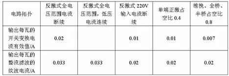 表1 各种开关变换器电路拓扑的整流滤波的纹波电流和开关变换电流