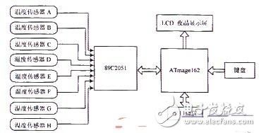 根据设计任务要求,本设计使用AVR单片机中的ATmega162作为主控制CPU,使用89C2051作为辅助CPU来采集数字温度传感器DS18B20传送出来的温度值,并通过8位端口的连接,传送温度值给ATmega162,从而实现多路温度值的采集。再通过ATmega162运算处理,实现多路温度的数字显示,同时还可以显示其相应的温度柱状图。