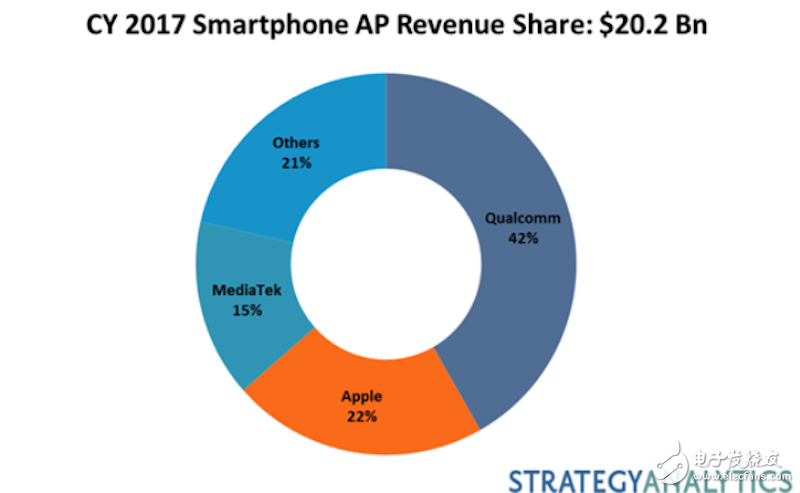 Strategy Analytics的报告显示,2017年全球智能手机处理器市场萎缩5%,总销售额下降到202亿美元。