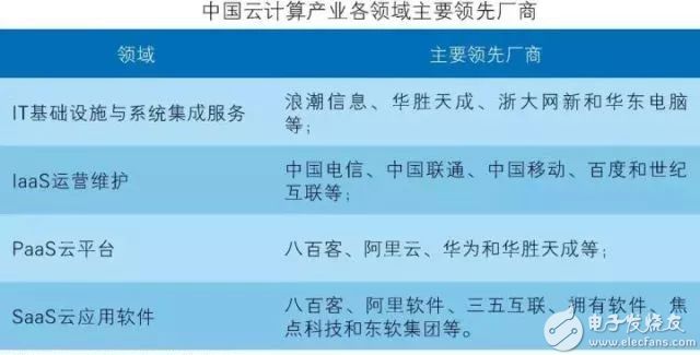 目前,中国云计算产业各领域主要领先厂商主要如下: