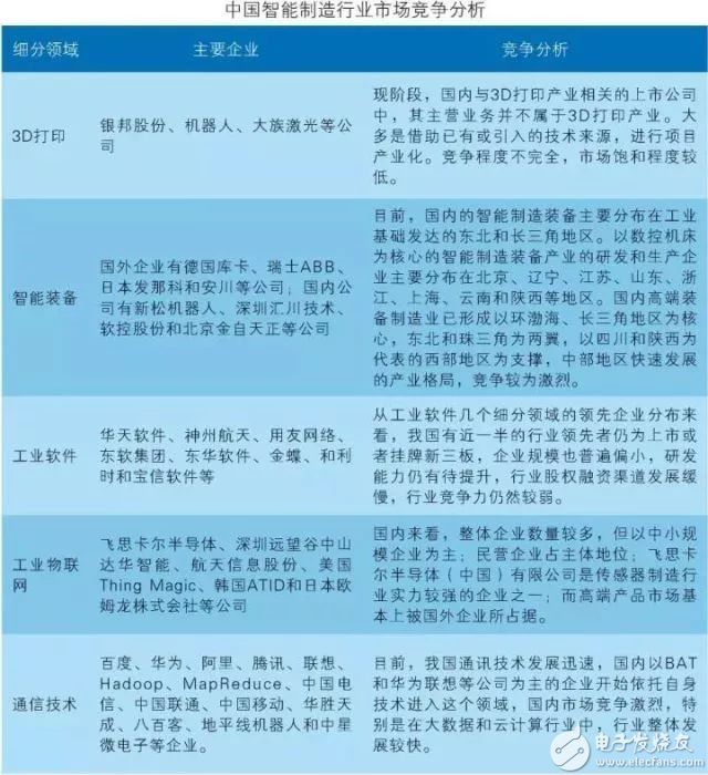 我国智能制造各细分领域目前的竞争状况汇总如下: