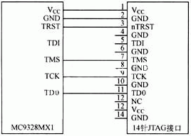 JTAG威廉希尔官方网站 是一种嵌入式调试威廉希尔官方网站 ,芯片内部封装了专门的测试电路TAP(测试访问口),通过专用的JTAG测试工具对内部节点进行测试和控制,目前大多数ARM器件支持JTAG协议,标准JTAG接口是4线;TMS(测试模式选择)、TCK(测试时钟)、TDI(测试数据串行输入)、TDO(测试数据串行输出)。JTAG接口的连接有两种标准,即14针JTAG接口与MC9328MX1连接电路。