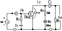 (2)从图解得知输入电压Ui与集电极输出电压Uo反相,基极电流ib、集电极度电流Ic与输入电压Ui同相。