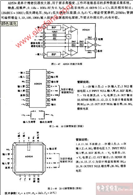电子发烧友网>电子威廉希尔官方网站 应用>电路原理图>放大电路图>运算放大器电路>AD524 16引脚管脚图