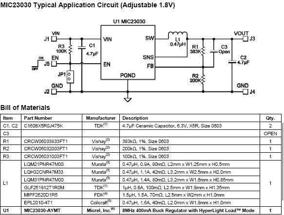 The MIC23030 is a high efficiency 8MHz 400mA synchronous buck regulator with HyperLight Load™