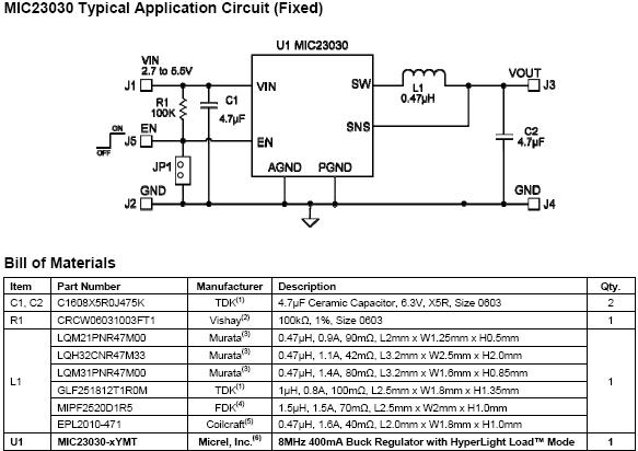 View the reference design for MIC23030-CYMT EV. //www.obk20.com/soft/ has thousands of reference designs to help bring your project to life.